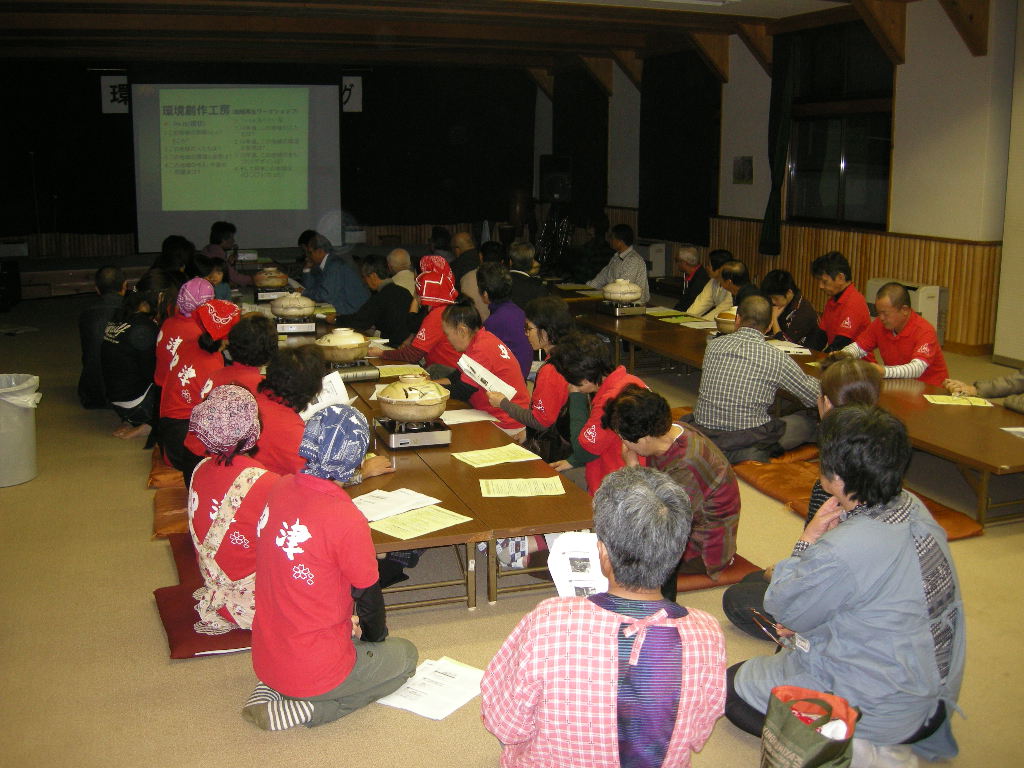 ワークショップ終了後は、中津の食文化を研究する「中津赤の美女軍団」の手づくり料理を囲んでの楽しい情報交換懇親会がいつものように盛大に開催されました。
