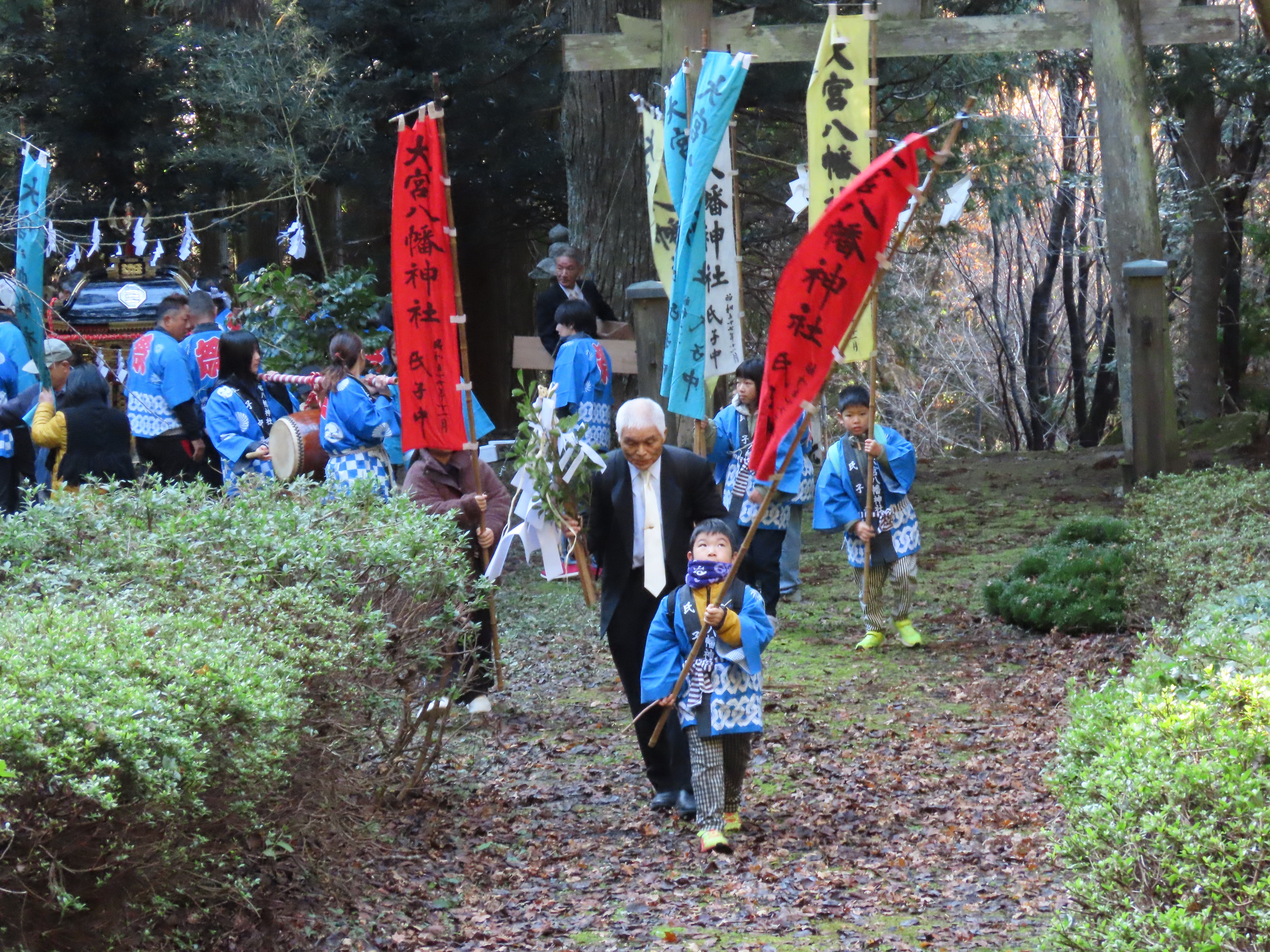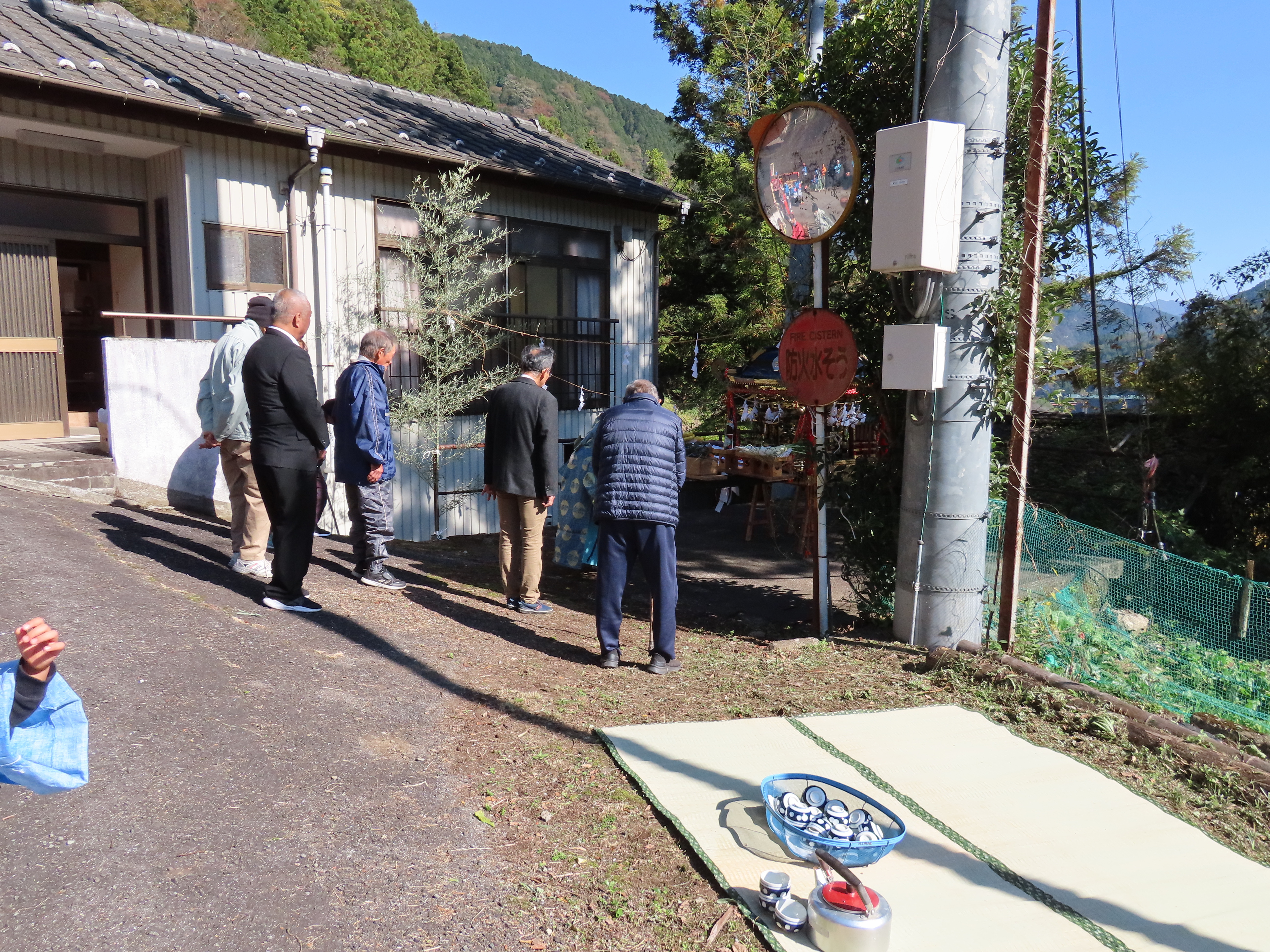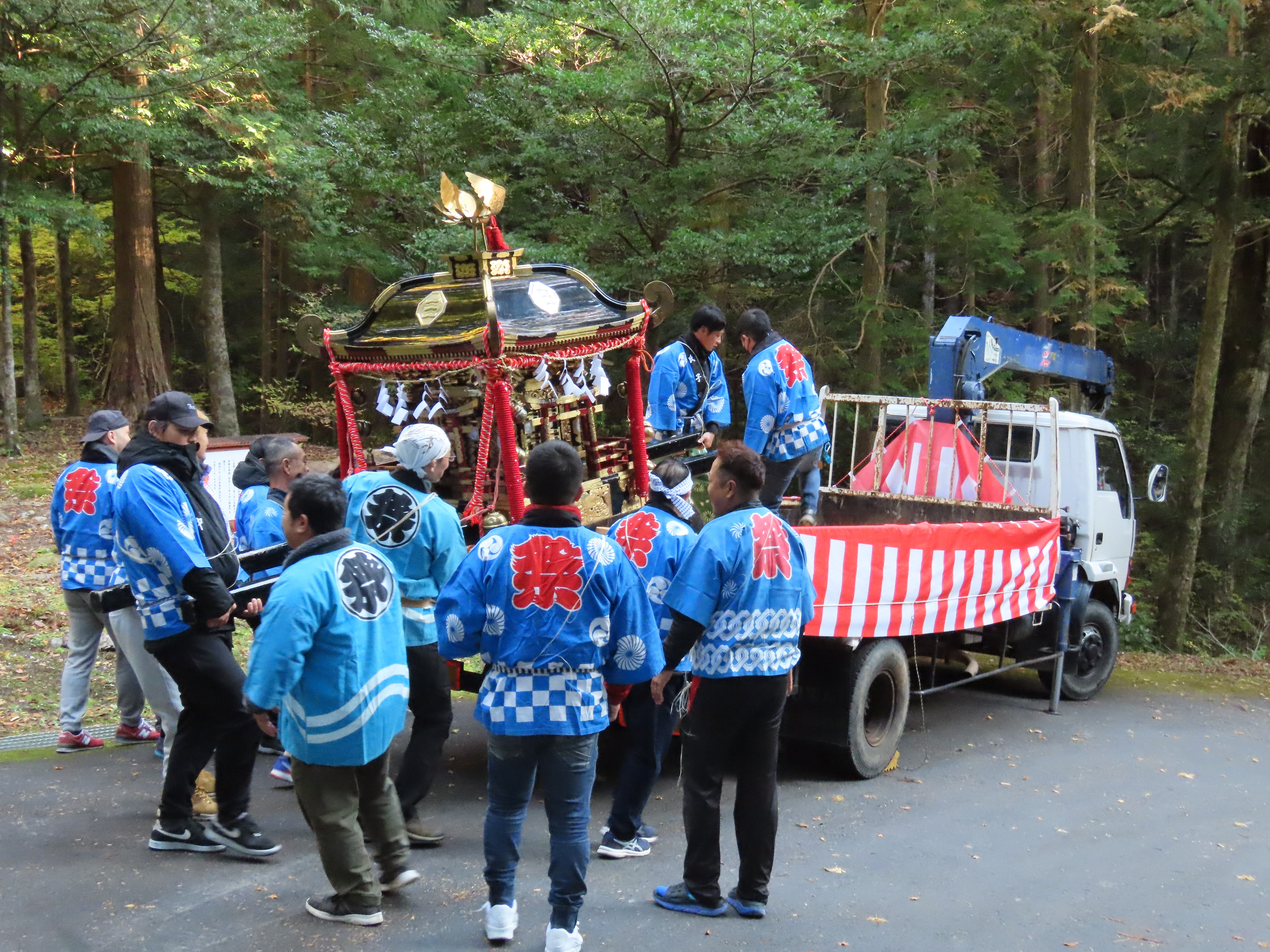 秋祭りの準備、のぼり立て