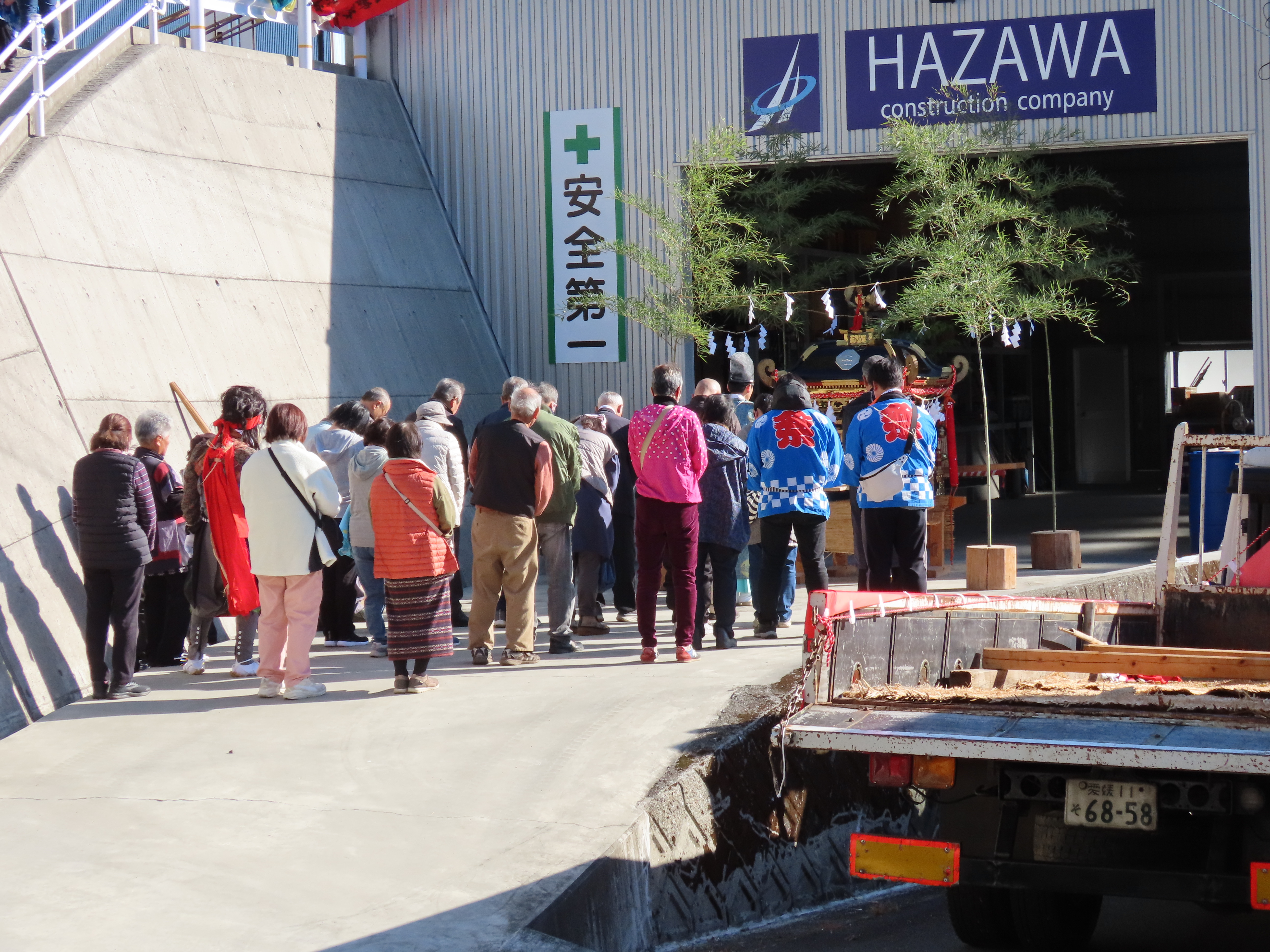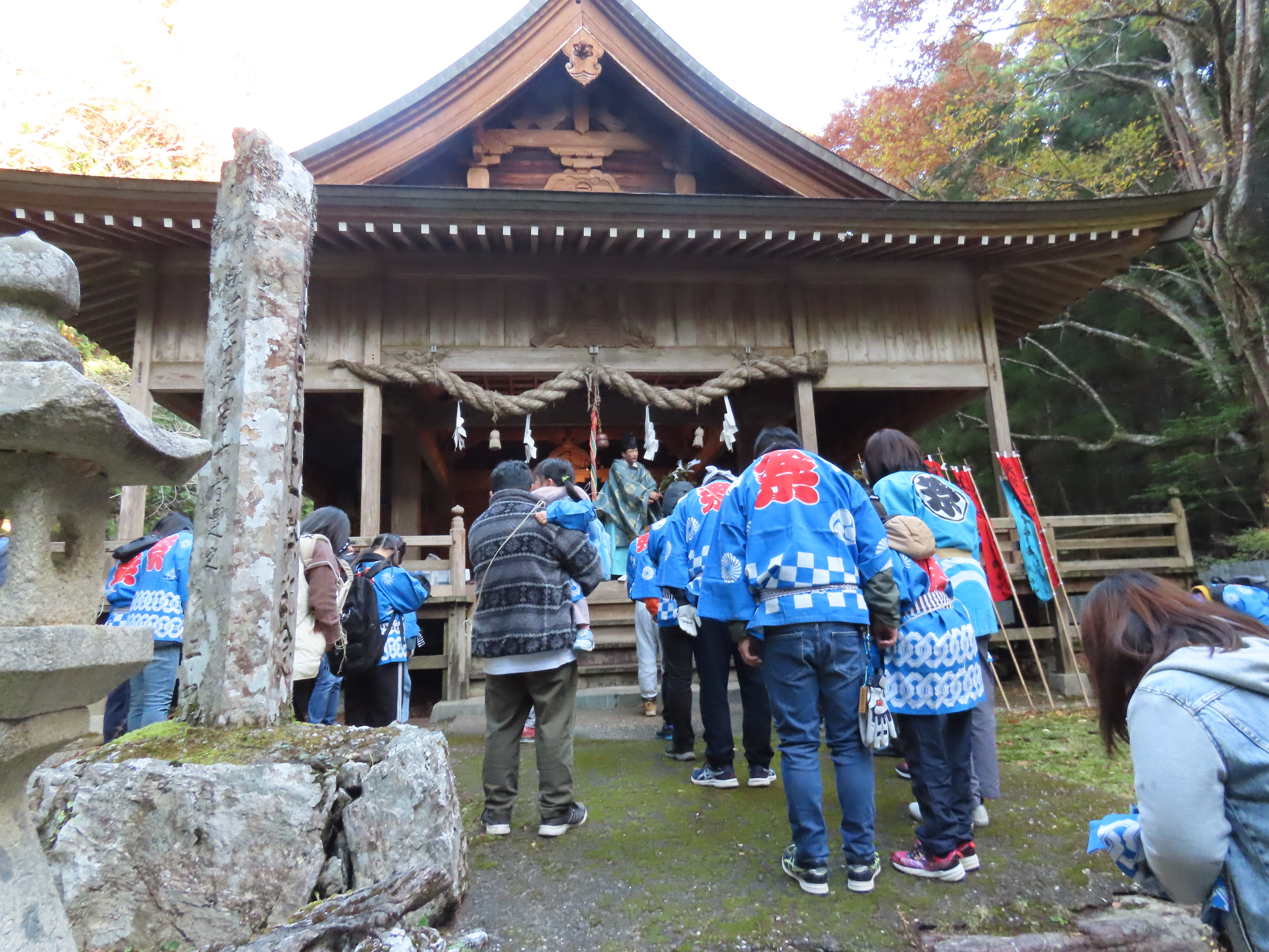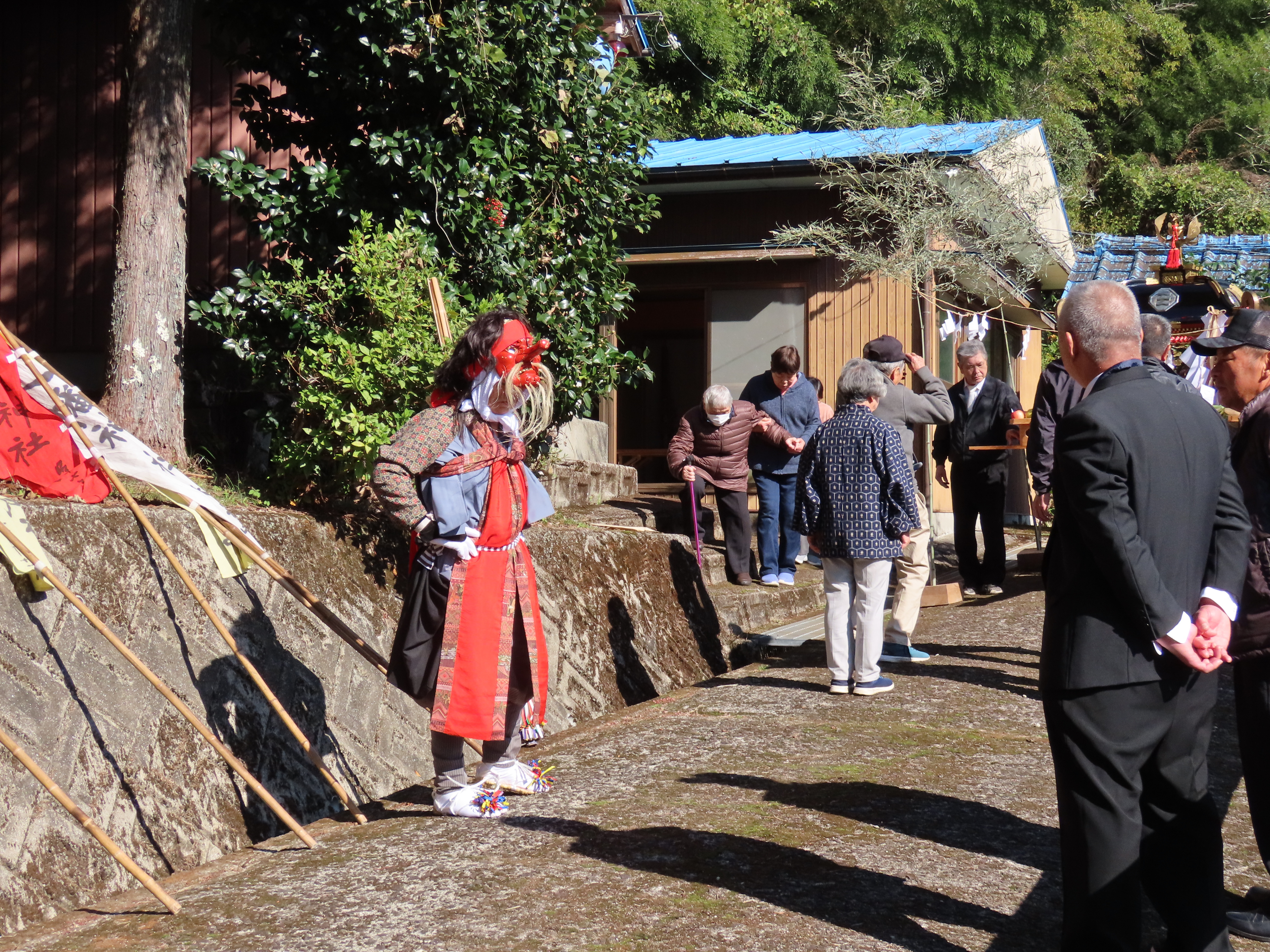 秋祭りの準備、のぼり立て